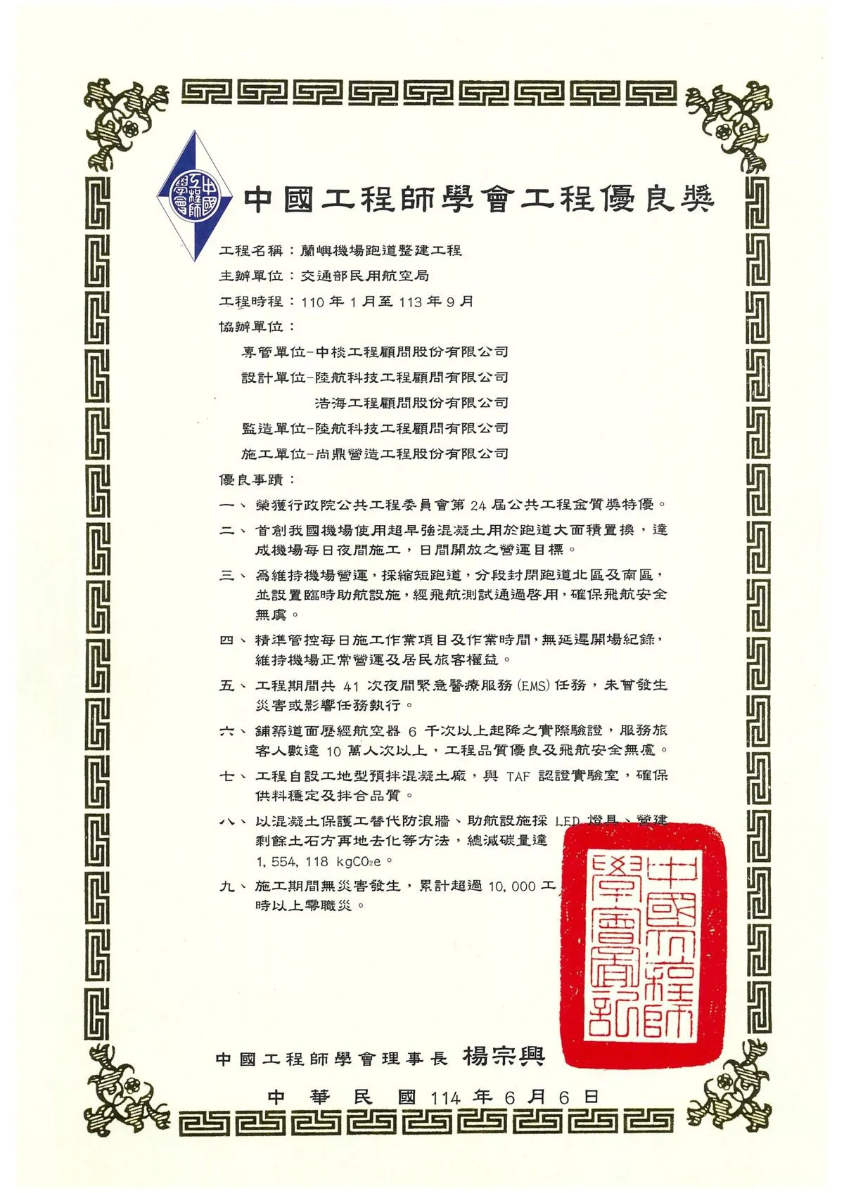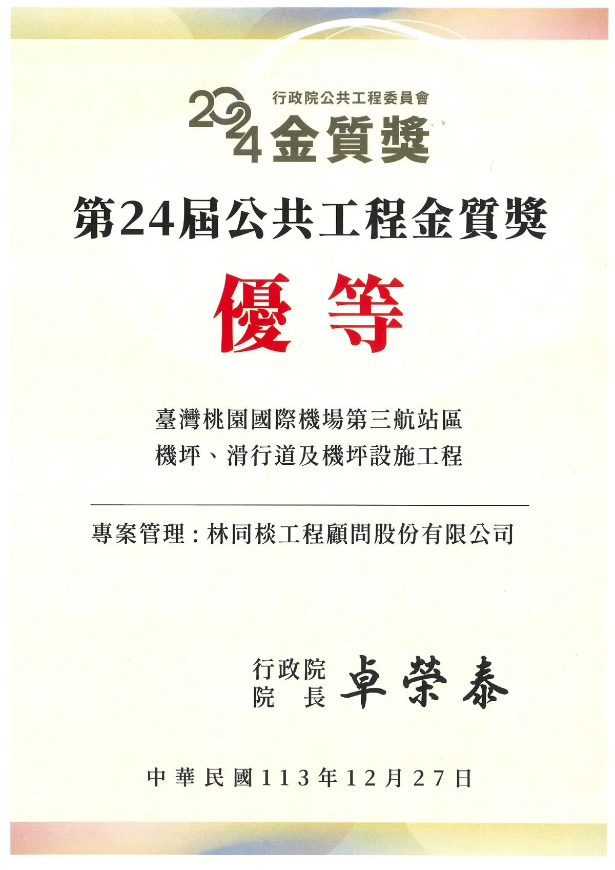 114年度第2屆桃園市政府安心工程獎公共工程A組優等