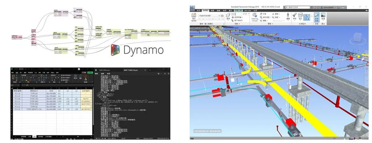 BIM自動化建置技術的核心,在於將設計人員既有的設計流程與數據表單,直接透過程式化規則轉換為三維模型,讓「設計即模型」成為可能。傳統上,工程師需先完成2D設計,再交由建模人員進行3D模型轉換,不僅耗時,亦容易因重複輸入或判讀誤差而導致數據不一致。透過自動化流程,工程師在輸入設計參數或完成計算後,系統即可依據表單內容或資料檔案,快速生成BIM模型,涵蓋橋梁上部結構、下部構造、基礎,乃至各類地下管線。