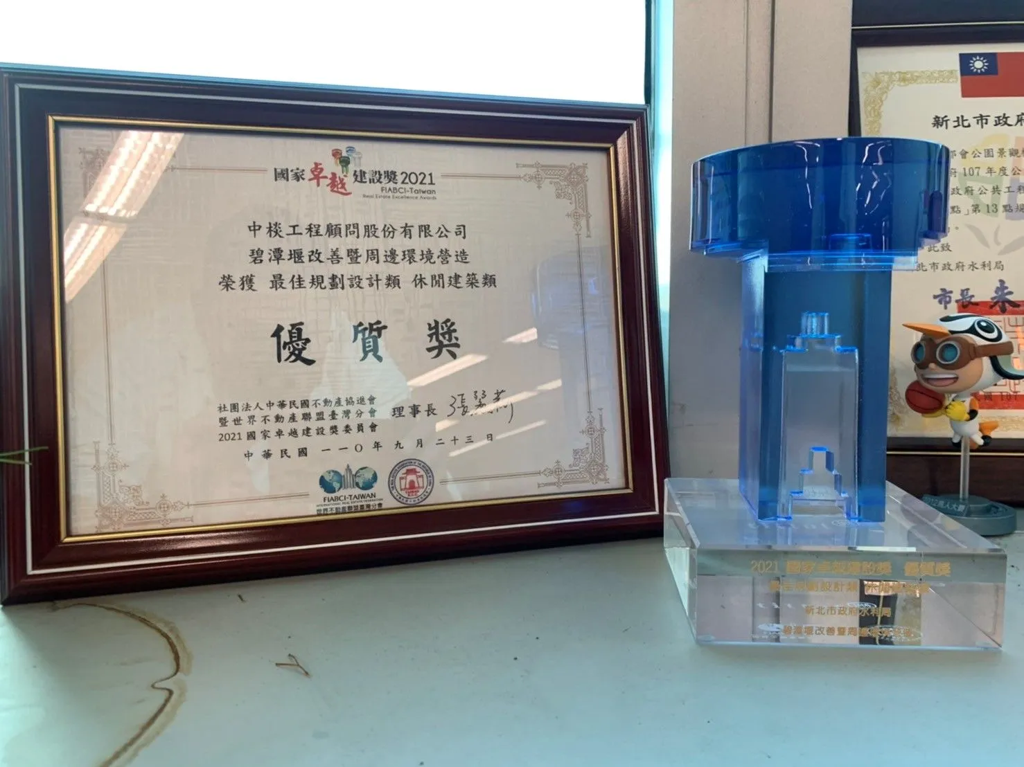 碧潭堰改善暨周邊環境營造榮獲 國家卓越建設獎110年度第16屆-最佳規劃設計類優質獎 中華建築金石獎110年度第29屆-優良空間活化類-規劃組