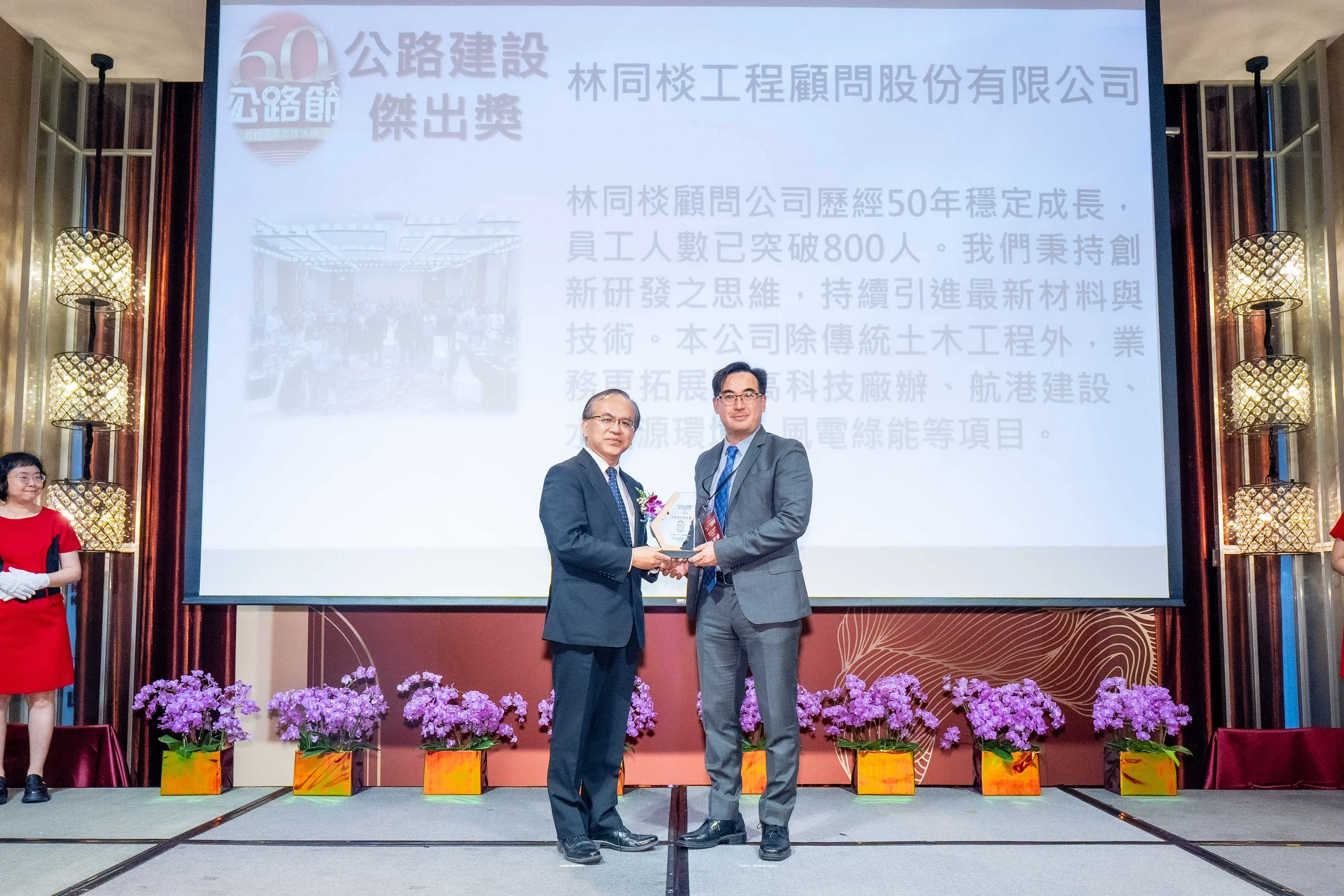 114年7月1日慶祝公路節60周年,本公司獲頒「公路建設傑出獎」,分別由王宇睿董事長代表林同棪工程顧問公司領獎,劉敬德執行副總代表美商同棪顧問公司領獎。
