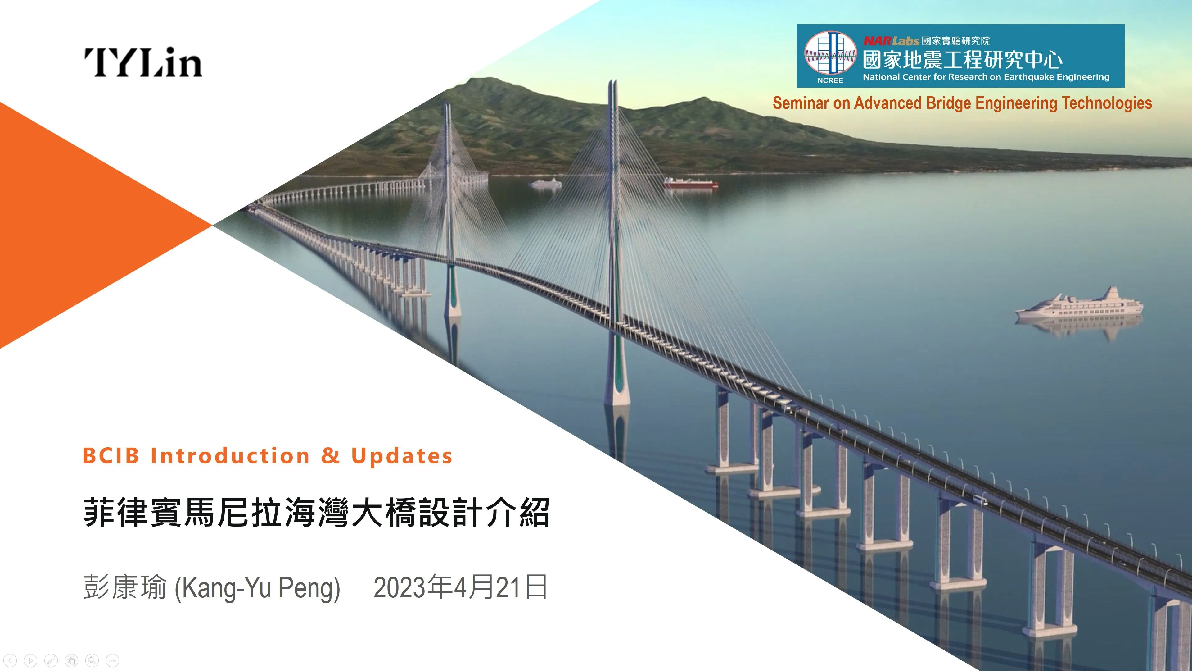 「國家地震工程研究中心」主辦「橋梁先進工程技術研討會」於國震中心101會議室舉行(2023.4.21),本公司彭康瑜副總經理應邀於研討會中發表「菲律賓馬尼拉海灣大橋」設計介紹說明。