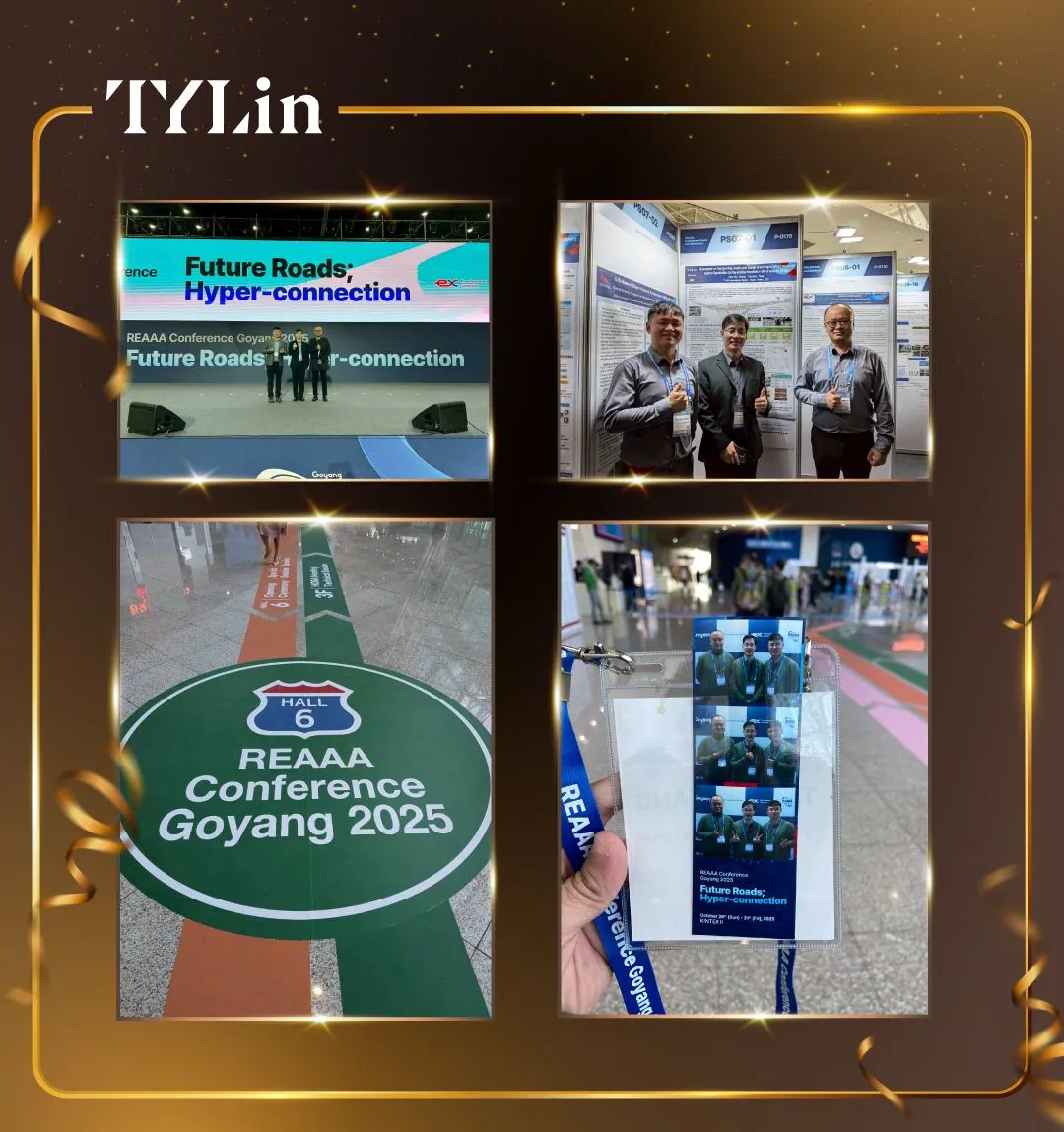 亞澳道路工程協會REAAA Conference 2025於韓國高陽市舉辦(10/27~10/31),林同棪工程顧問公司由曾國誠協理帶隊出席,並與運輸土木部地工組張哲胤組長及楊喆巽副組長於10月29日下午 Poster Session 發表論文:《Discussion on Trial Grouting Results and Design of Soil Improvement Measures against Liquefaction for the Shallow Foundation Site of Existing Bridges》充分展現公司在橋梁與大地工程領域(特別是液化防治) 的技術專業與研發實力。 會中並與 Korea Expressway Corporation Research Institute 之 首席研究員 (Principal Researcher) Gyungja Jung 博士就基礎、地盤、結構與土壤交互作用(Soil–Structure Interaction)等議題進行深入交流,分享彼此最新研究成果與工程實務經驗。 特別感謝亞新公司莫仁維董事長蒞臨會場並投下最佳論文一票,為台灣團隊打氣加油! 本次大會主題“Future Roads; Hyper-connection”與公司核心業務高度契合,涵蓋 AI 應用於道路養護、智慧交通系統(ITS)及永續鋪面材料等公司長久關切議題,本次會議與國際最新技術接軌,為公司未來在公路、鐵路、BIM/GIS 與智慧基礎設施技術發展方向提供重要的國際視角與啟發。