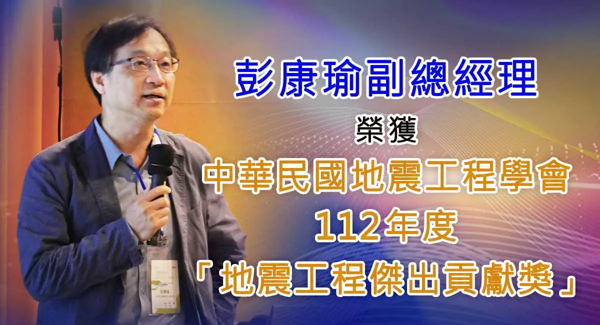 彭康瑜副總經理獲中華民國地震工程學會112年度「地震工程傑出貢獻獎」,將於12月9日(六)於會員大會年會頒授地震工程傑出貢獻獎獎座。