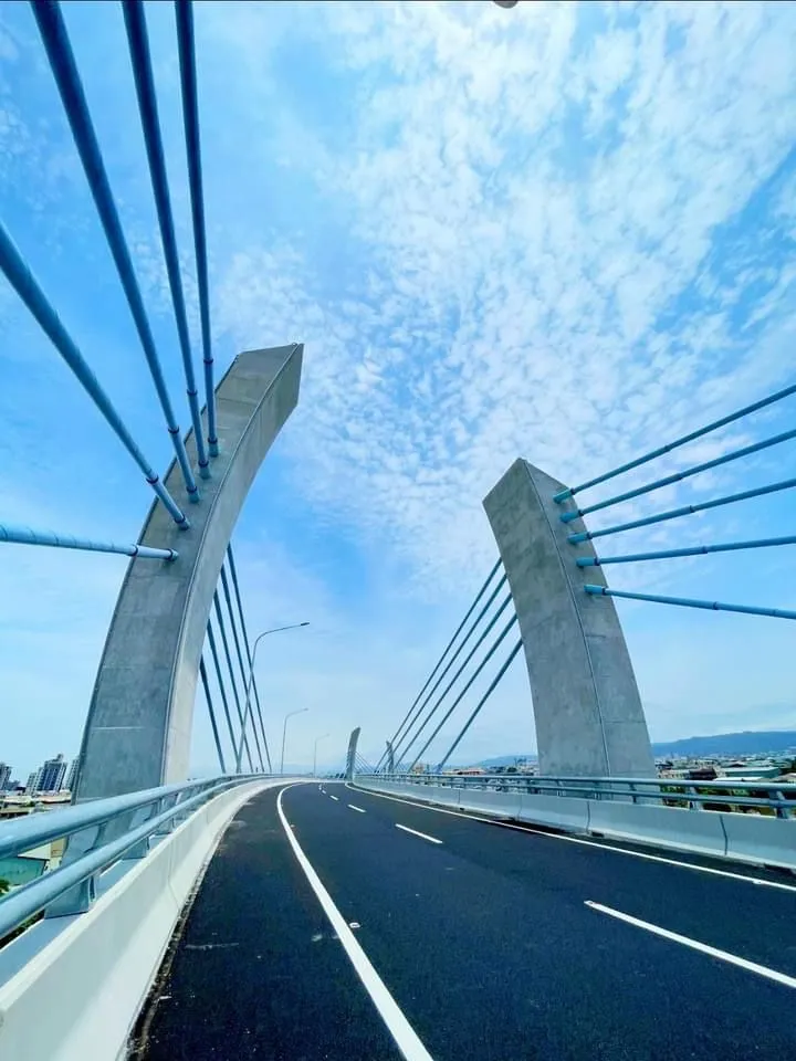 本工程以跨越國道之雙塔雙索面脊背橋形塑中部國道地標,象徵中央地方攜手合作。而工程環境受限於都會區諸多限制,須依地形地貌因地制宜選擇適合工法,包括跨員寶庄圳懸臂工法、昌平橋橫移改建工法、跨台74鋼梁吊裝、PCI橋及匝道場撐箱型梁等。由於工程跨越國道省道及地區重要道路,為兼顧工進及用路人安全,懸臂車推進及鋼梁吊裝均須利用夜間進行。共計封閉國道主線25次、快速道路88次,均有賴工程團隊一起克服艱鉅之施工挑戰。