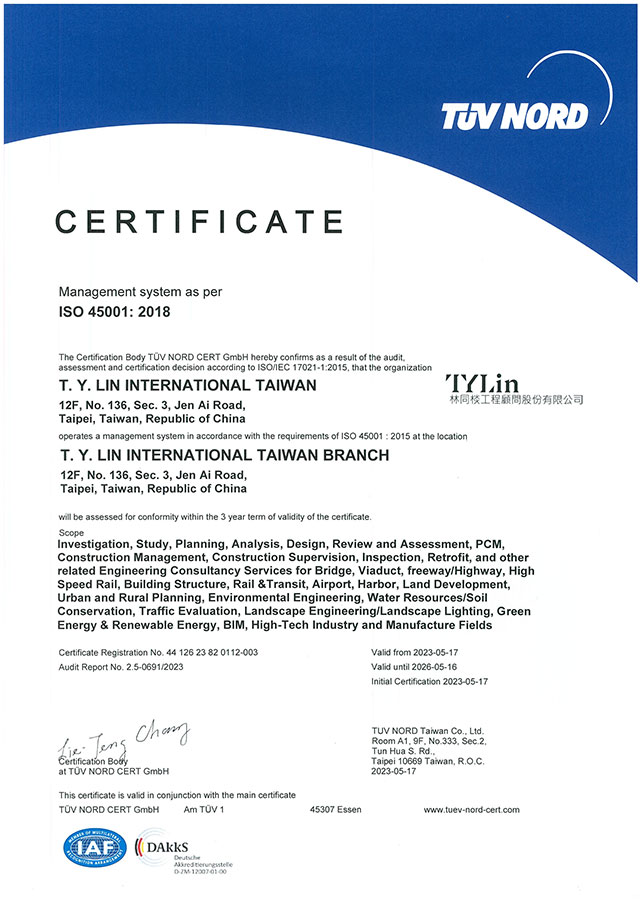 依ISO 45001職安衛管理系統,定期鑑別與評估工作場所和作業中潛在的危害。