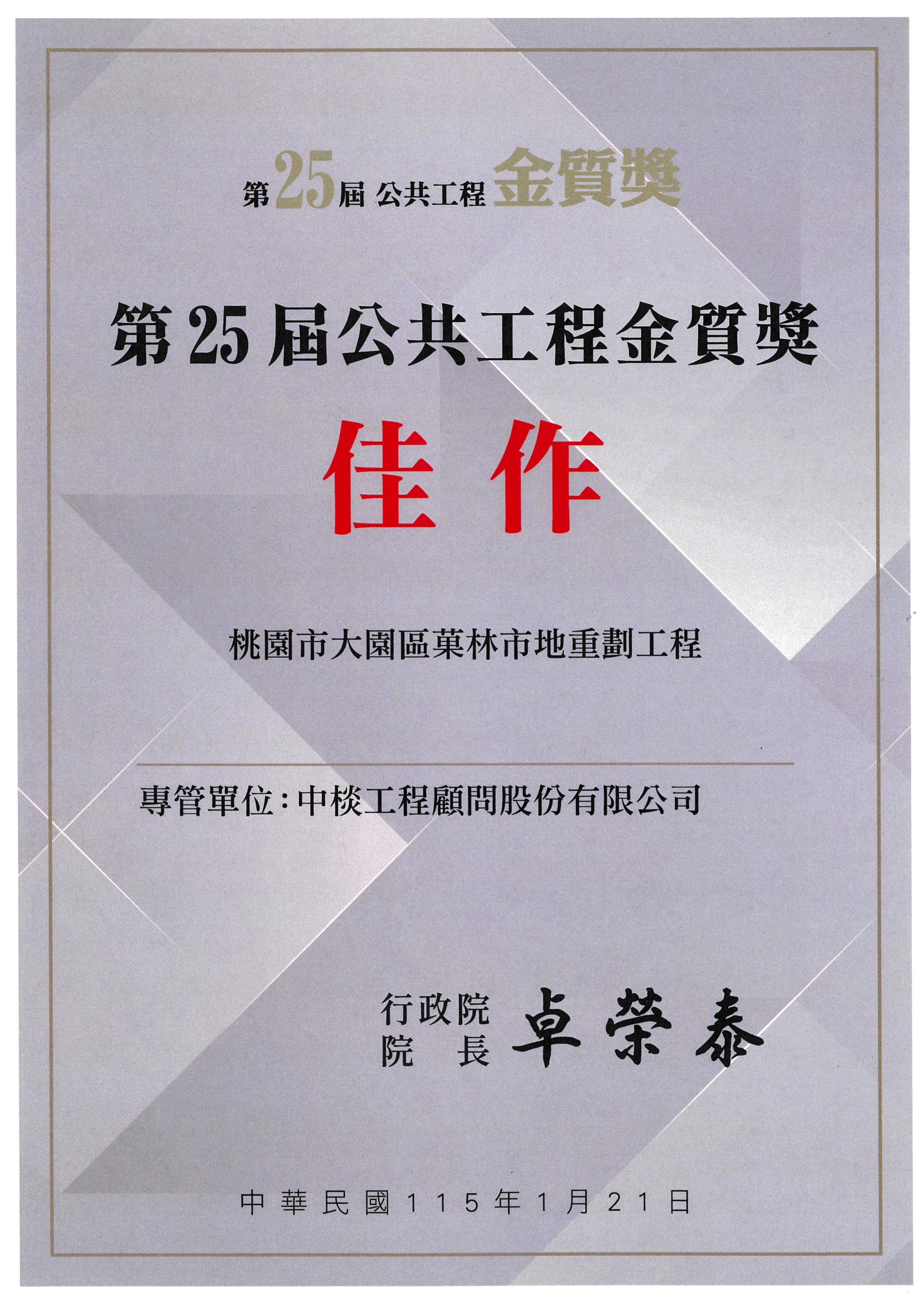 115年度第25屆公共工程金質獎佳作
