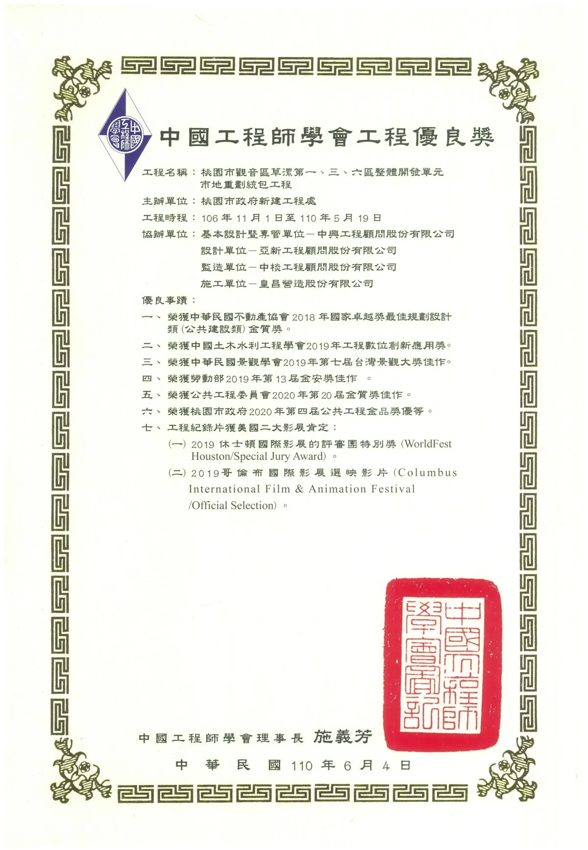 111年度桃園市政府第6屆公共工程金品獎