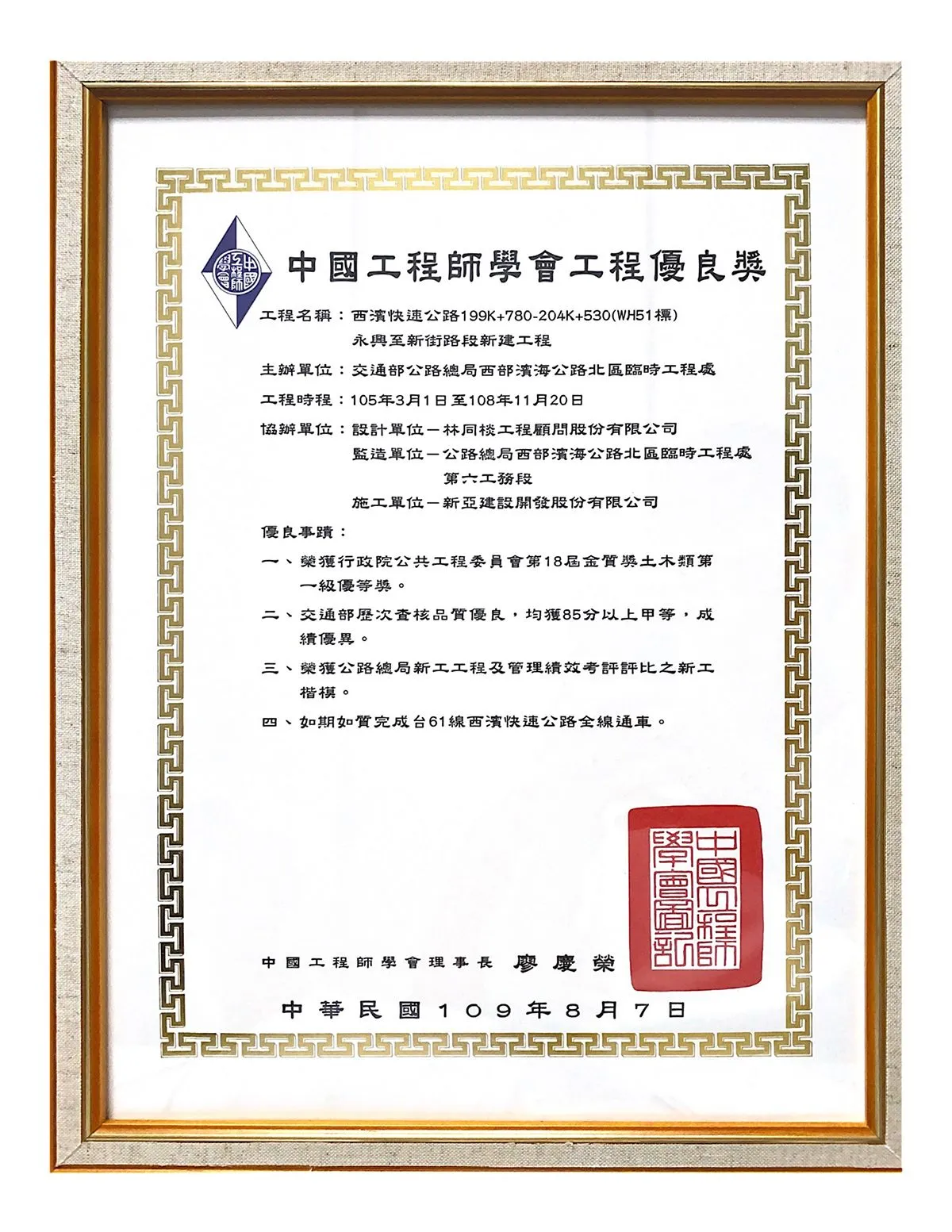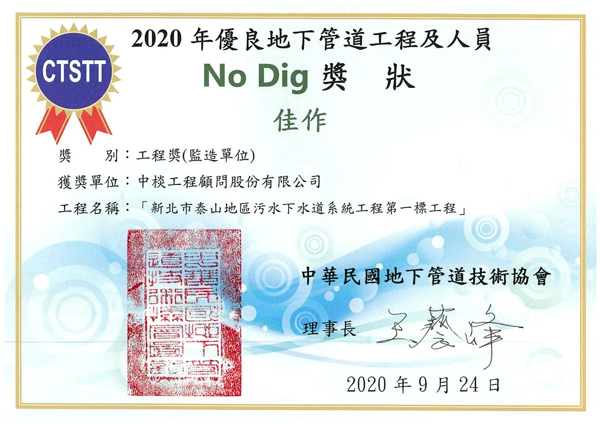 109年度優良地下管道工程及人員-工程獎(設計)(監造)