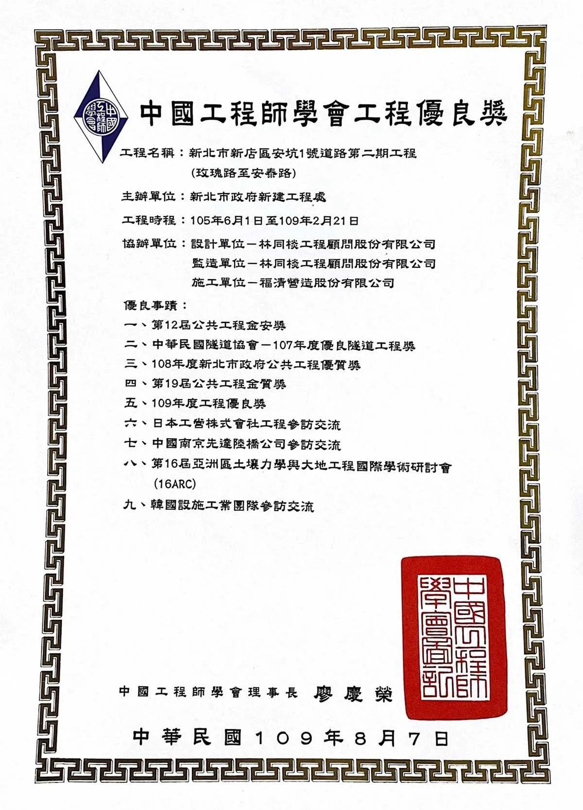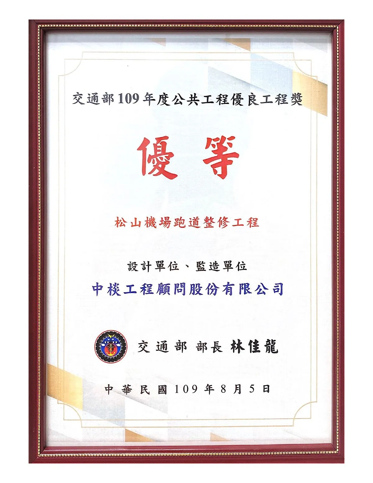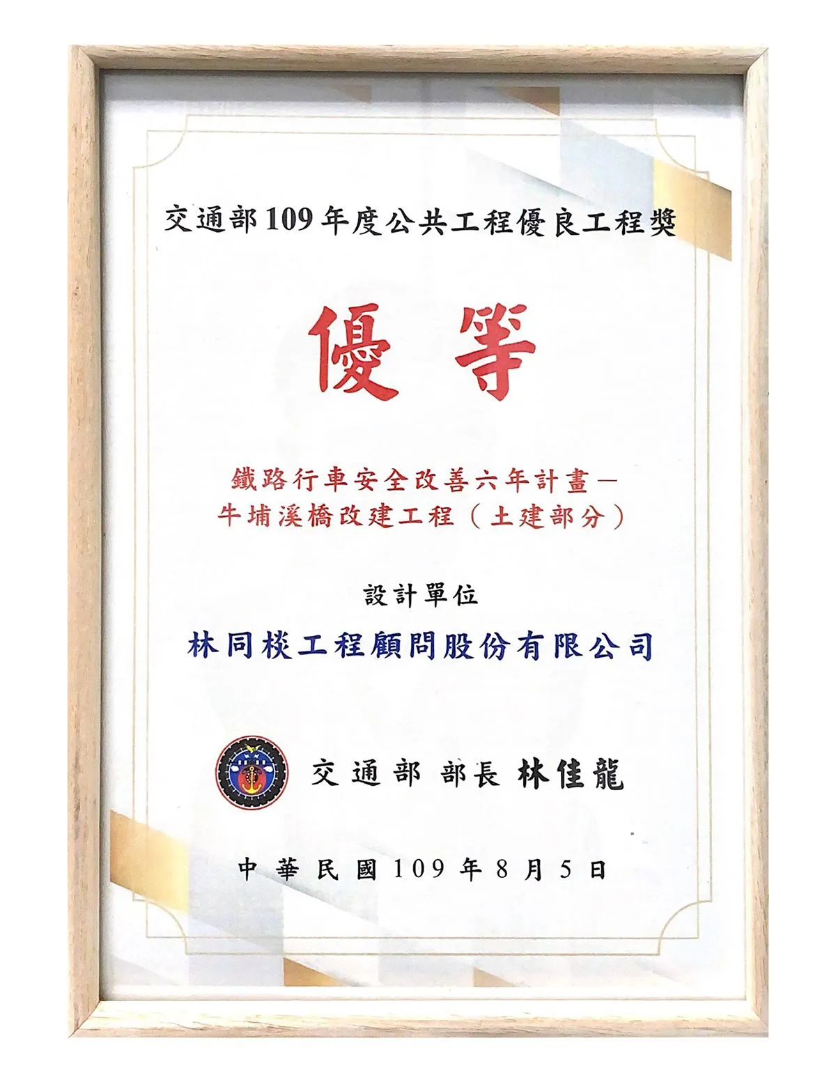 108年度第19屆公共工程金質獎-公共工程品質優良獎(中央土木1類)(設計、監造)