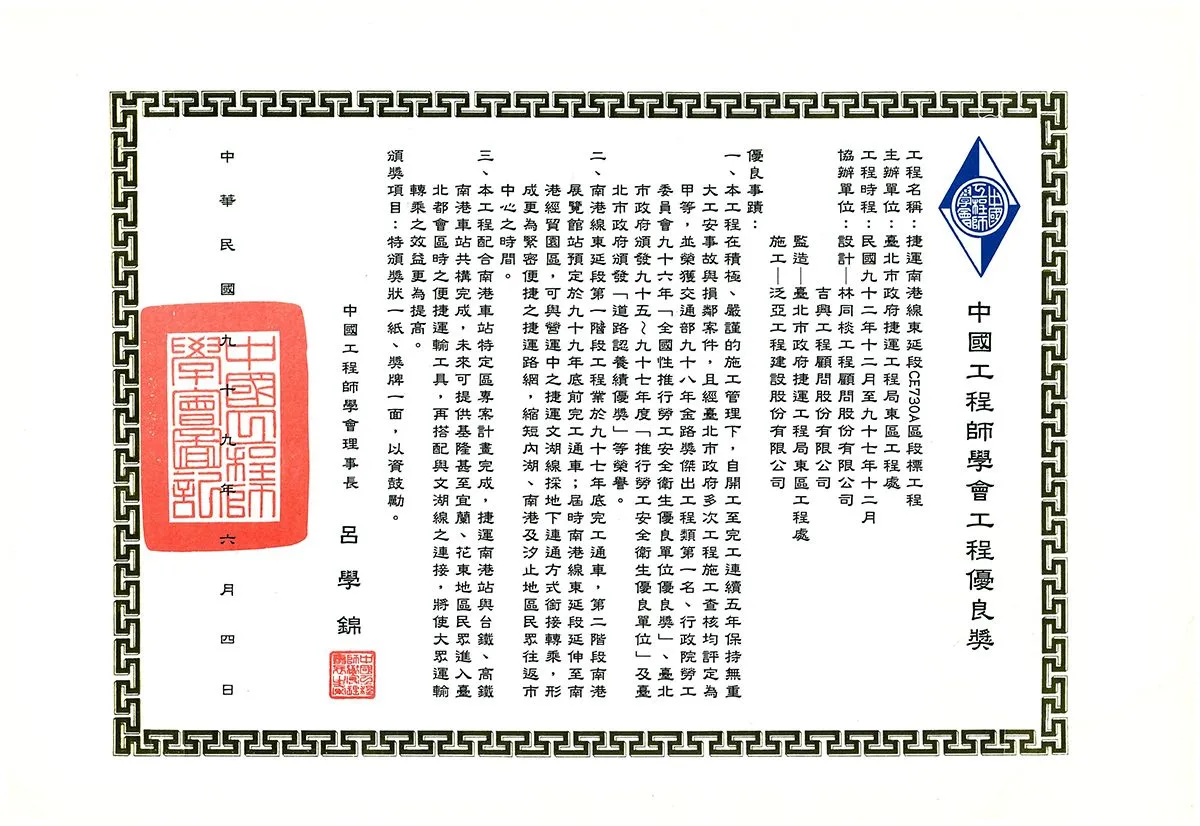 101年度臺鐵新竹內灣支線改善計畫工程績優廠商