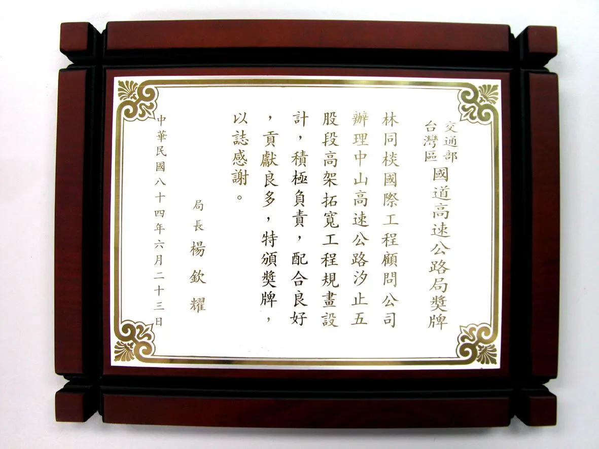 084年度中山高速公路汐止五股段高架拓寬工程規劃設計-感謝獎牌
