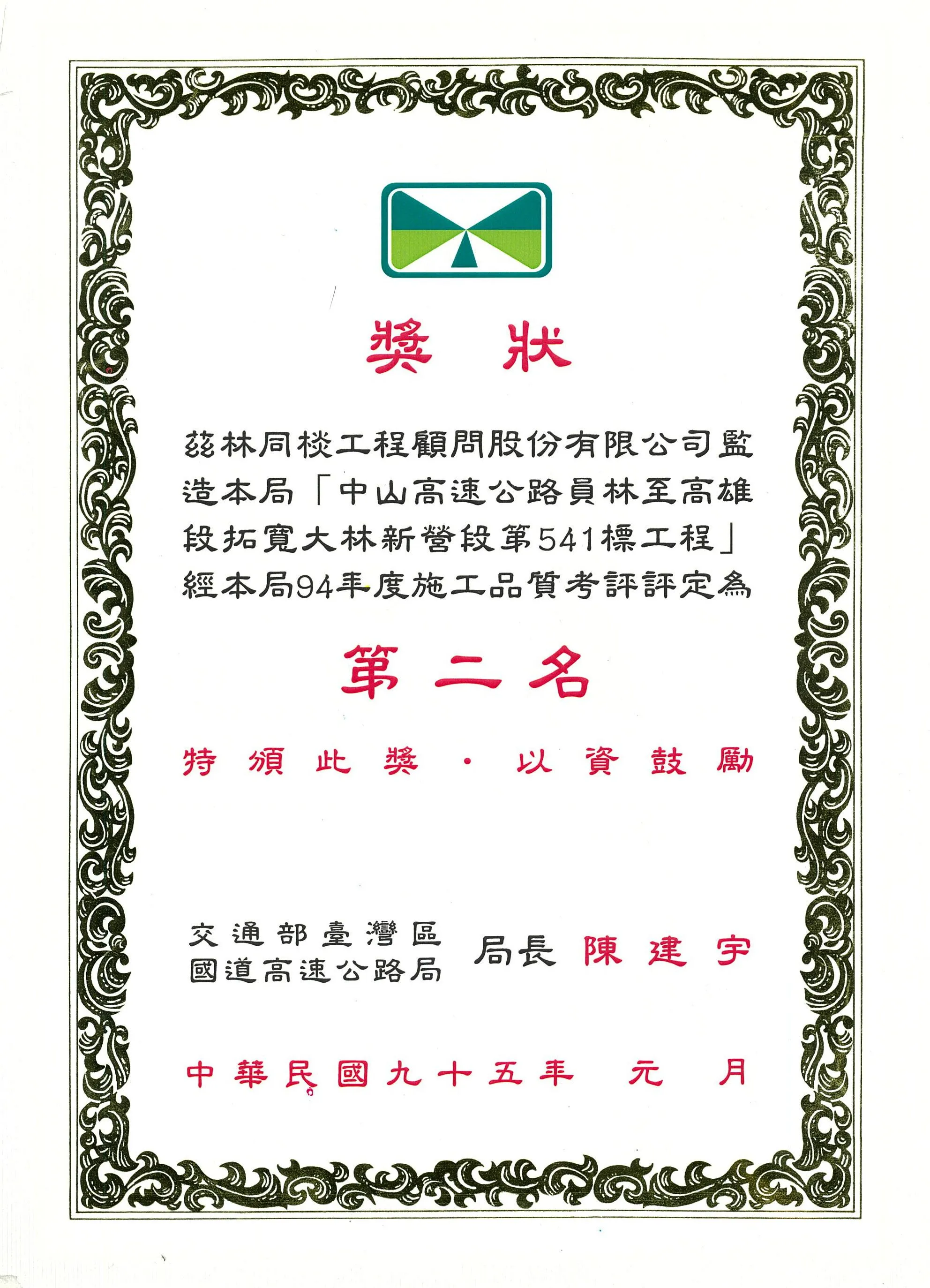 094年度中山高員林至高雄段拓寬大林新營段第541標工程施工品質考評