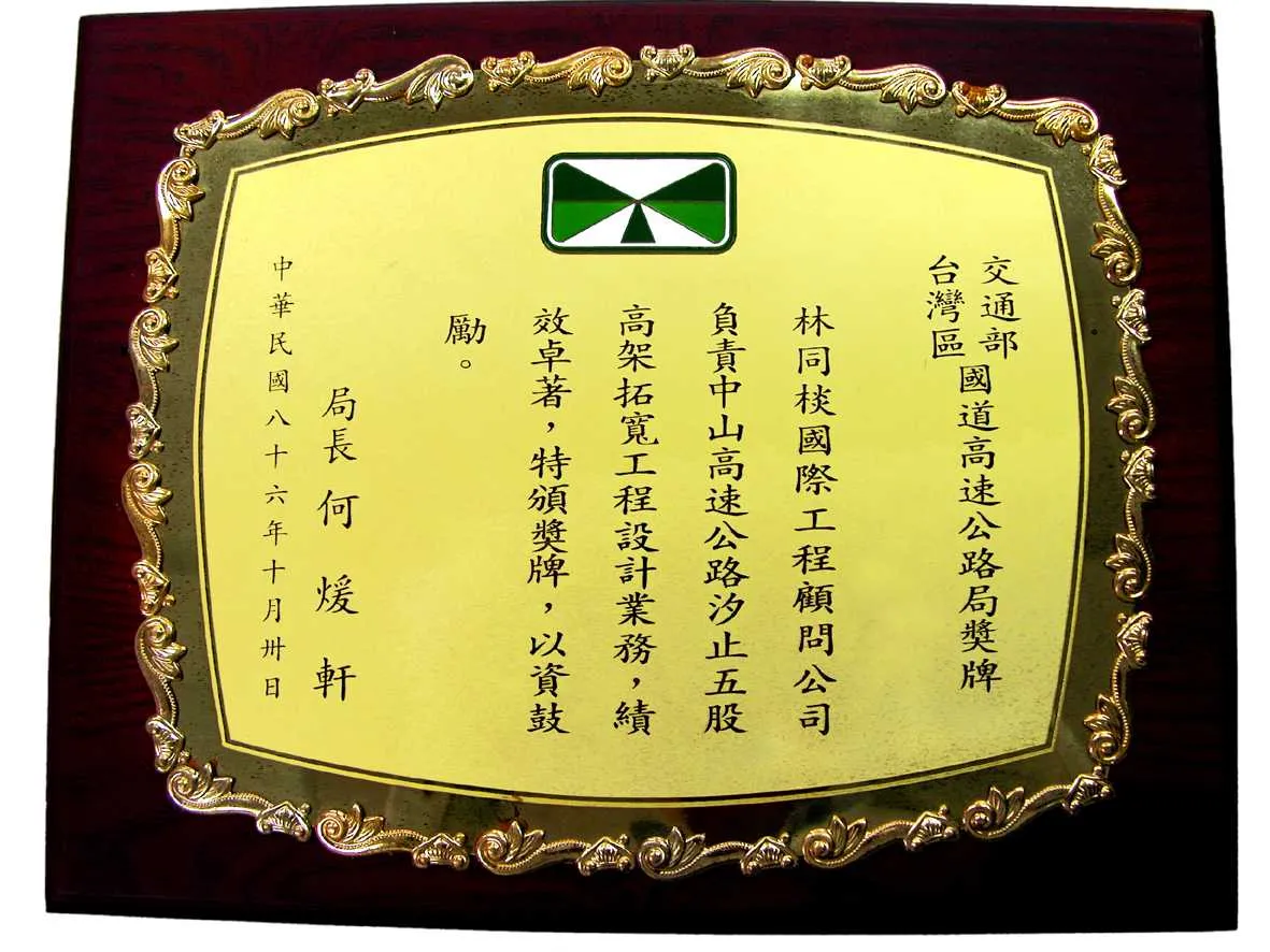 086年度中山高速公路汐止五股段高架拓寬工程規劃設計-感謝獎牌