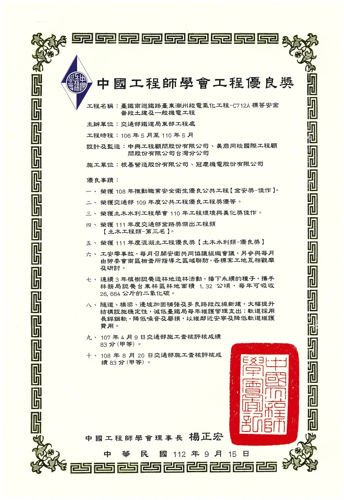 112年度中國工程師學會工程優良獎